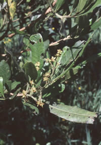 - Narrow elliptical leaves supported by 1cm long petioles (leaf