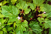 - Large dark green alternate oval leaves, up to 30 centimetres